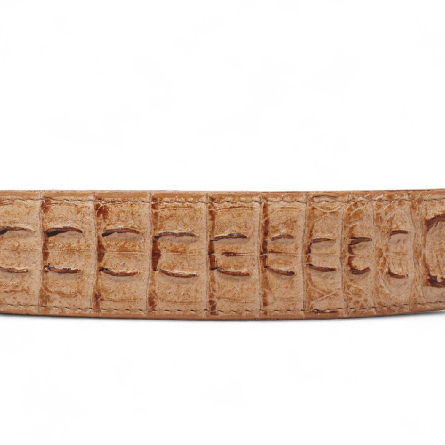 Genuine Leather Caiman Hornback Print Texas Metal Buckle Belt Sand Color - Tanner Mark Boots