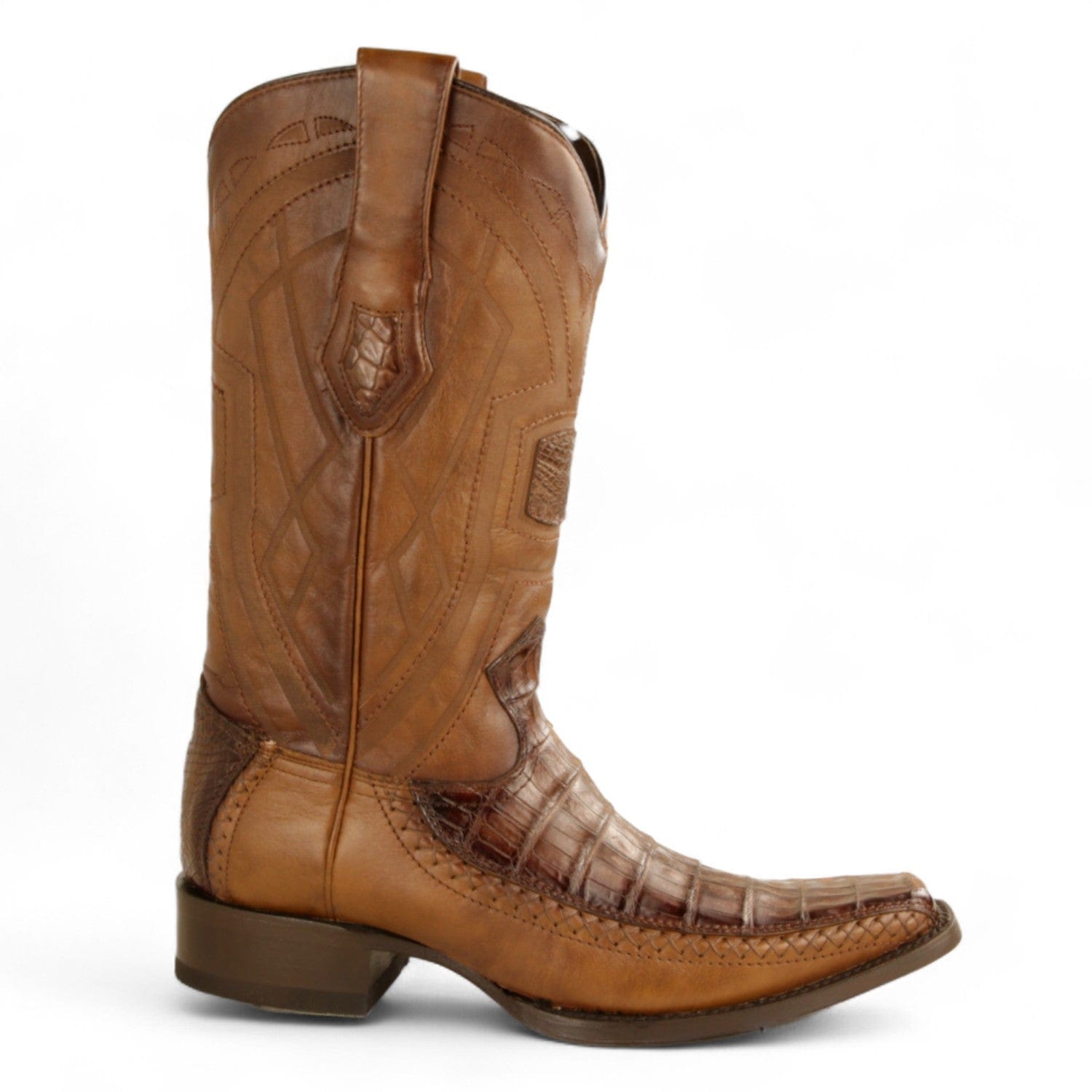 Men's Genuine Caiman Belly Skin European Square Toe Boots Faded Brown Color - Los Altos Boots