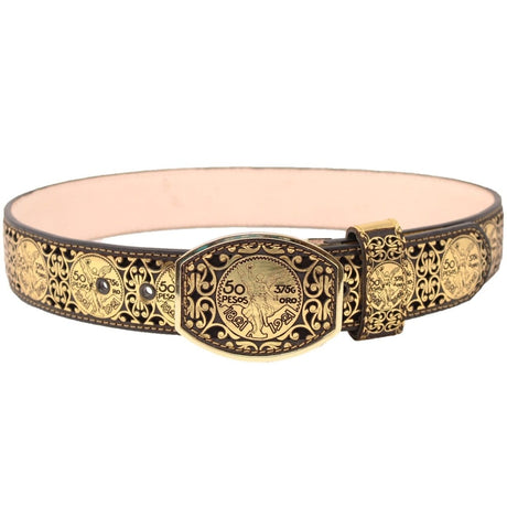 Men's El Centenario Gold Genuine Leather Western Belt Metal Buckle