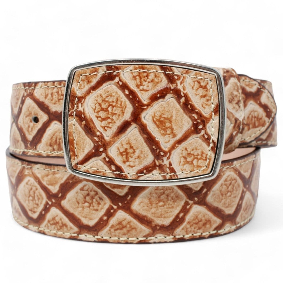 The Pirarucu pirnt cowboy belt is an impressive choice for cowboy lovers. Made from brown leather, this belt is sturdy and durable. The printed design makes it look unique and extravagant. With a width of 2 inches and a thickness of 1/4, it is the perfect complement to any cowboy outfit. It is one of the best-selling belts in our online store, a great choice for any special occasion or for a casual day at work.