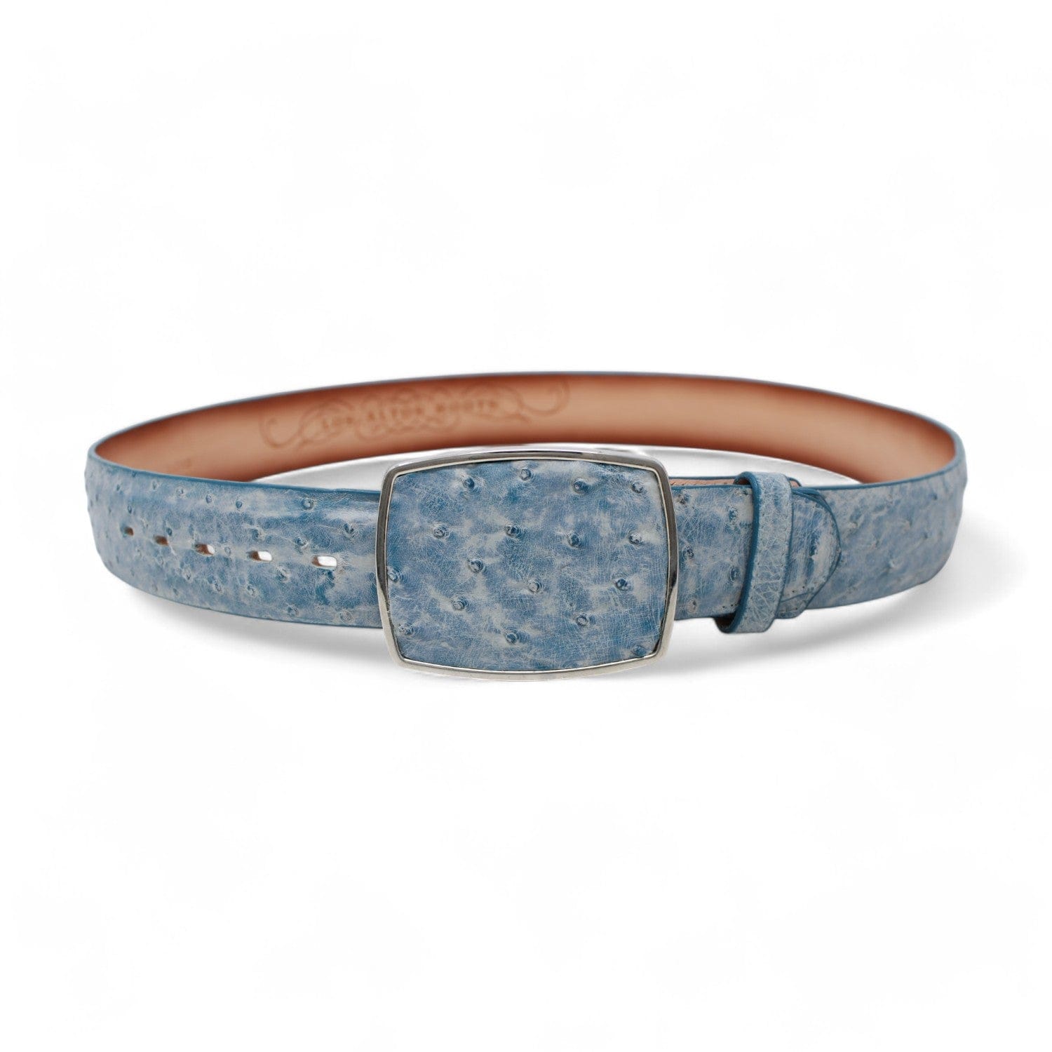 Genuine Ostrich Skin Cowboy Belt Rustic Blue Color - Los Altos Boots