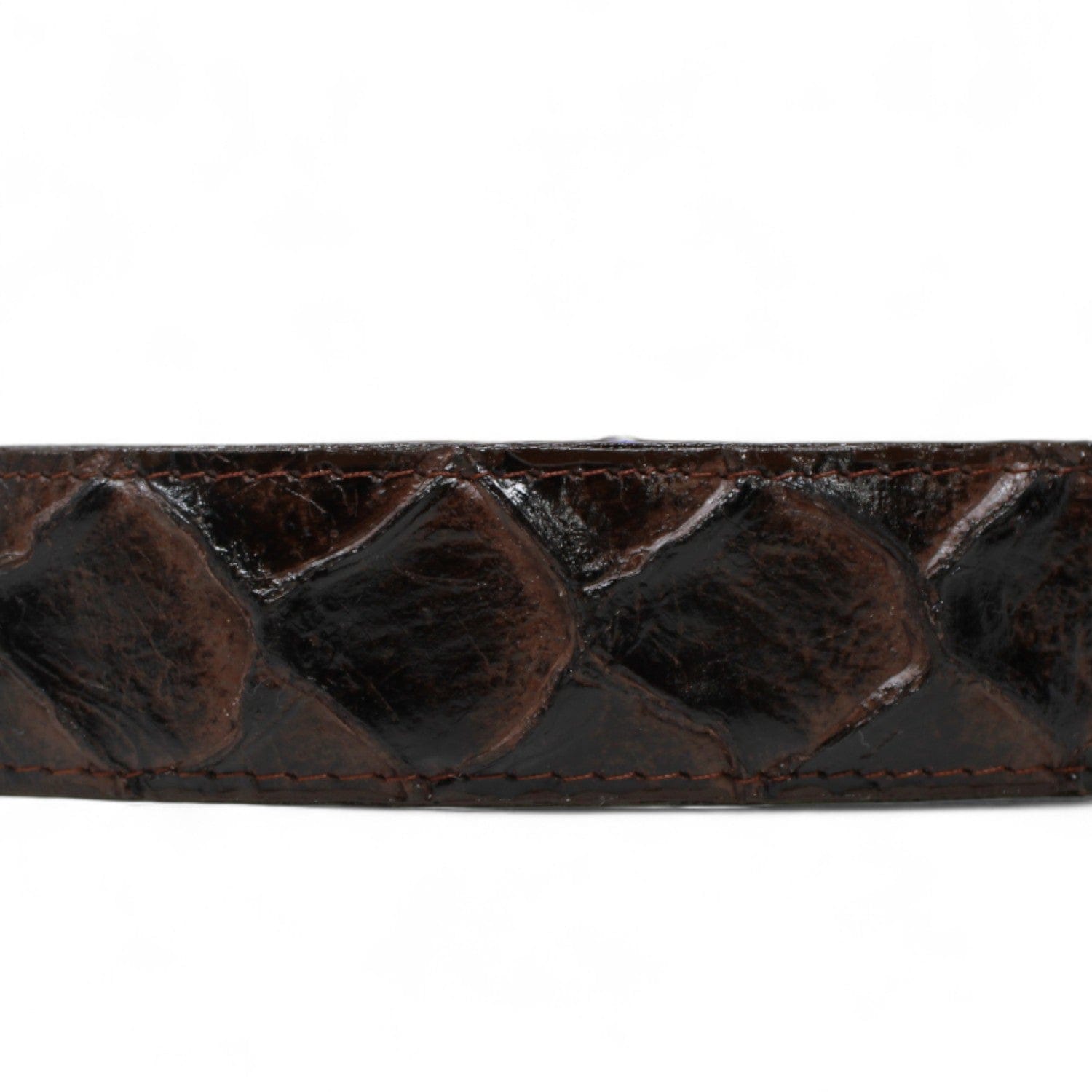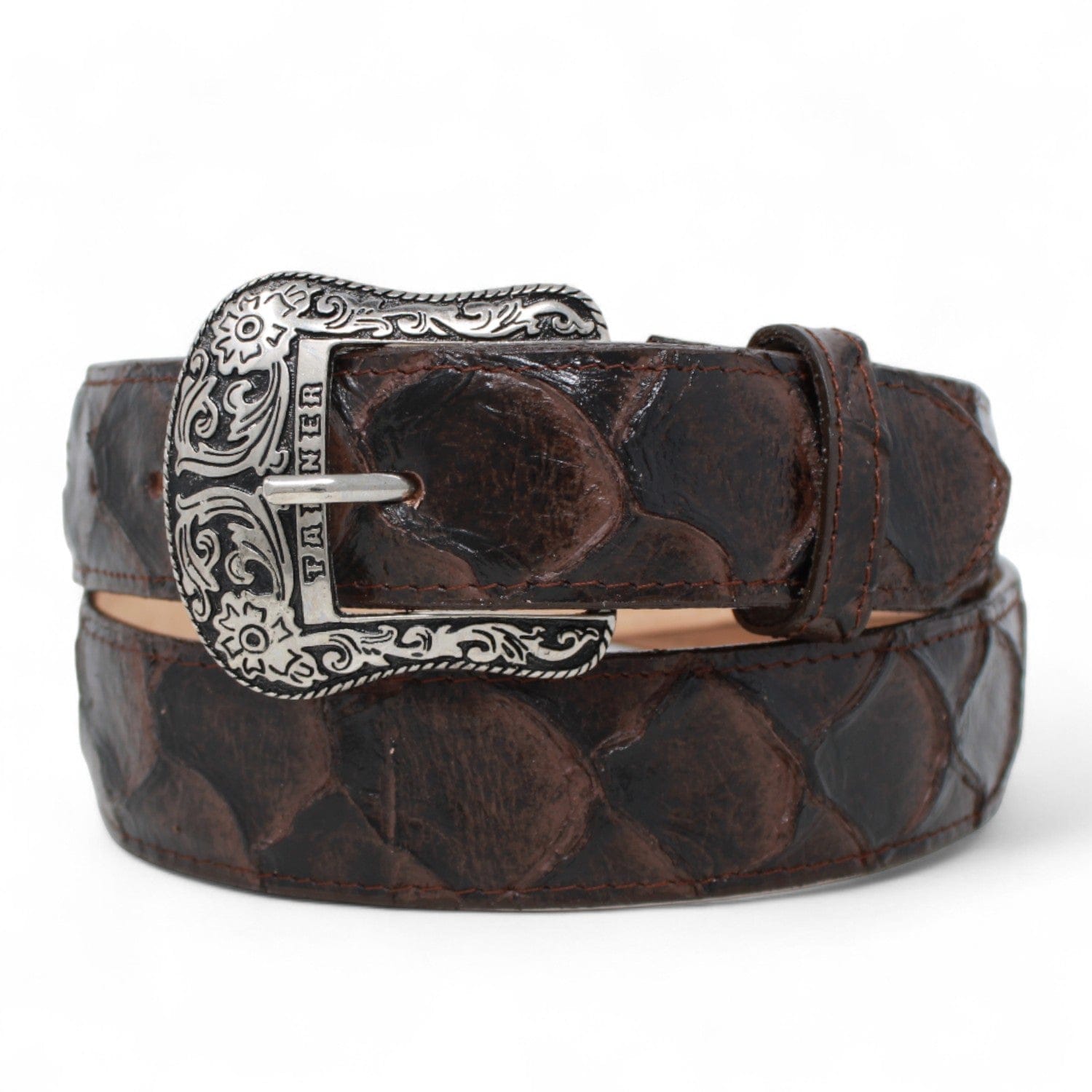 Genuine Leather Pirarucu Print Texas Metal Buckle Belt Brown Color - Tanner Mark Boots