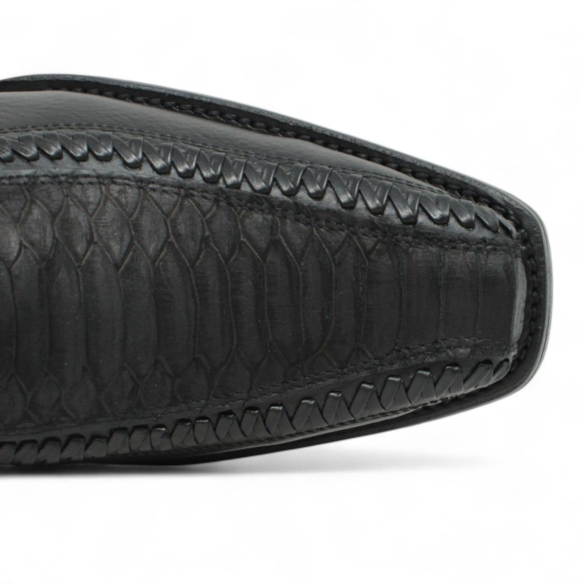 Men's Python Print Genuine Floater Leather Dubai Toe Boots Black Color - La Carreta