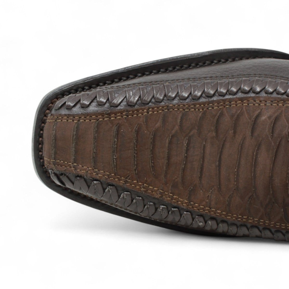 Men's Python Print Genuine Floater Leather Dubai Toe Boots Brown Color - La Carreta