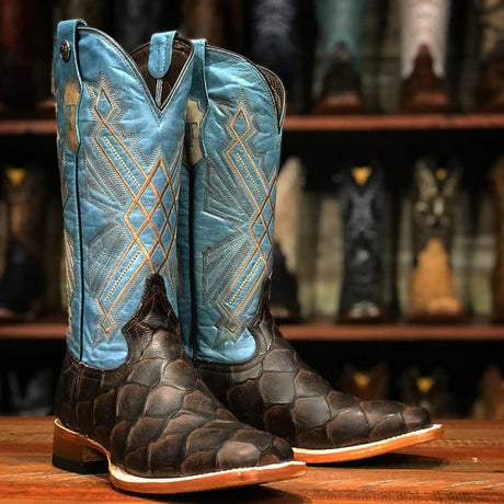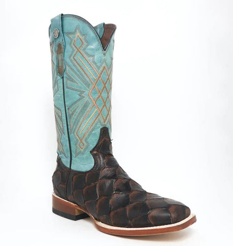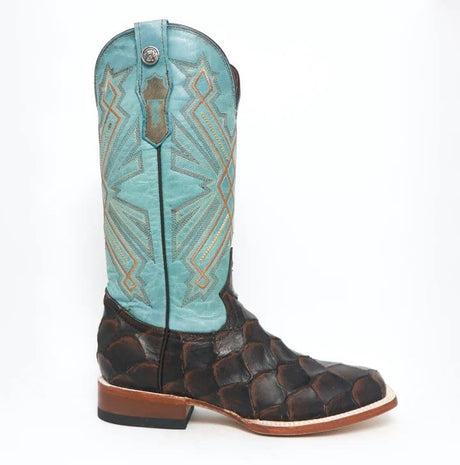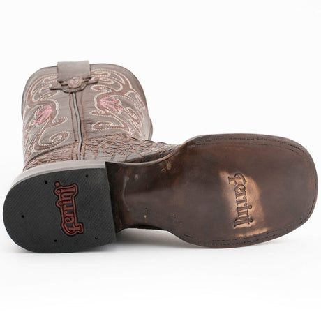 Ferrini Women's Bronco Square Toe Boots Pirarucu Fish Print - Chocolate 9339309