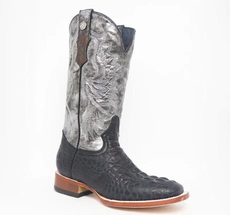 Tanner Mark Women's Print Caiman Belly Square Toe Boots Black