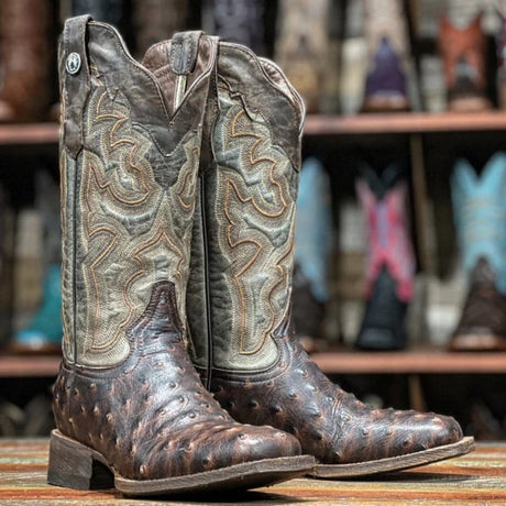 Tanner Mark Women's Ostrich Print Square Toe Boots Oryx TML207101