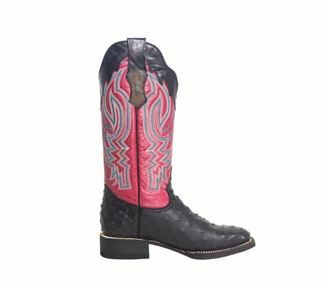 Tanner Mark Women's Ostrich Print Square Toe Boots Black TML207122