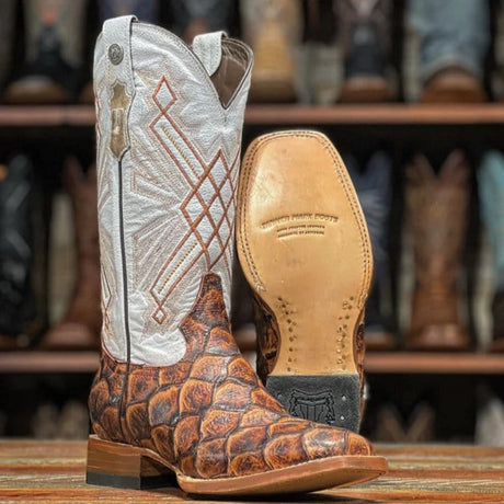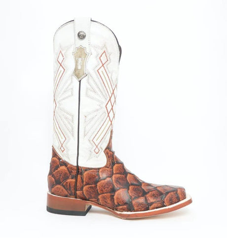 Ferrini Women's Bronco Square Toe Boots Pirarucu Fish Print - Honey 9339361