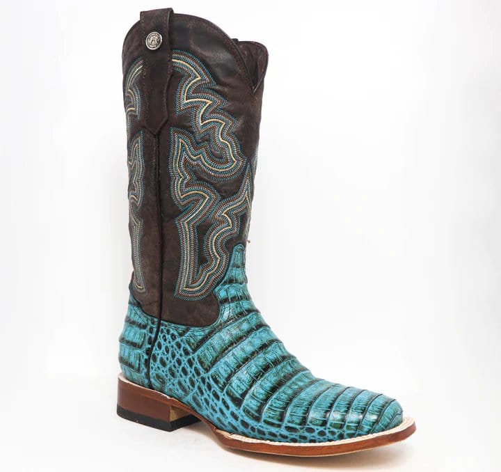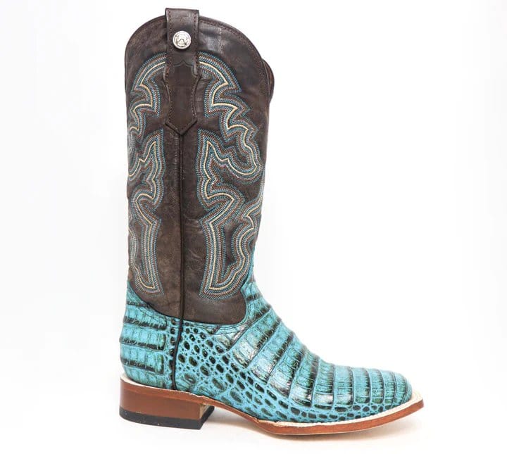 Tanner Mark Women's 'Agave Sky' Print Caiman Belly Square Toe Boots Turquoise TML207070