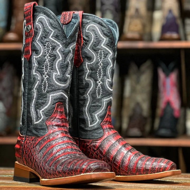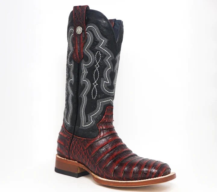 Tanner Mark Women's 'Scarlet' Print Caiman Belly Square Toe Boots Burgundy TML207069