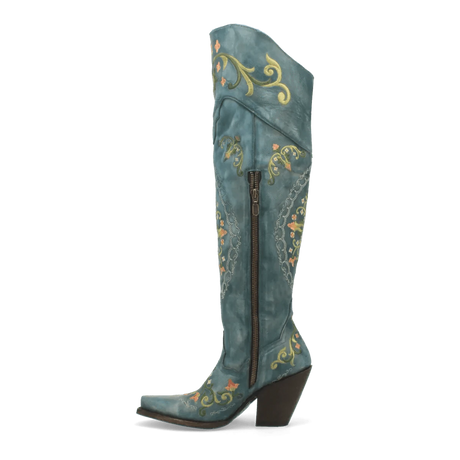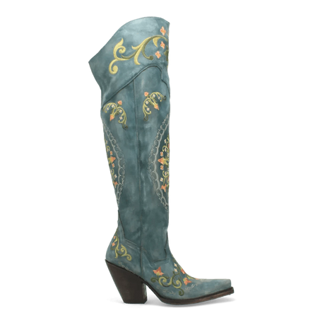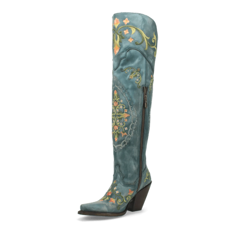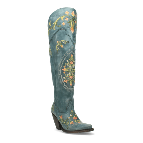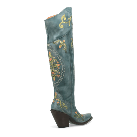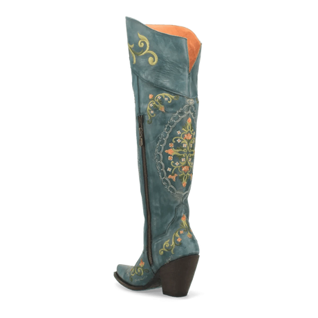 Dan Post Women's Flower Child Snip Toe Leather Tall Boots - Turquoise DP3271