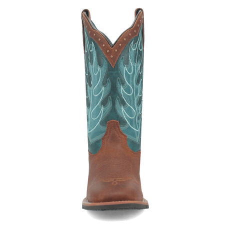 Laredo Women's Faye Broad Square Toe Leather Boots - Brown / Turquoise 3116