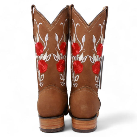 La Carreta Women´s Nobuck Leather Boots Camel with Red Roses LC-803