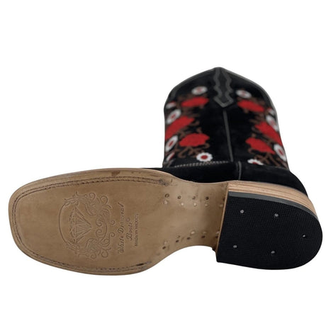 La Carreta Women´s Nobuck Leather Boots Black with Red Roses LC-103