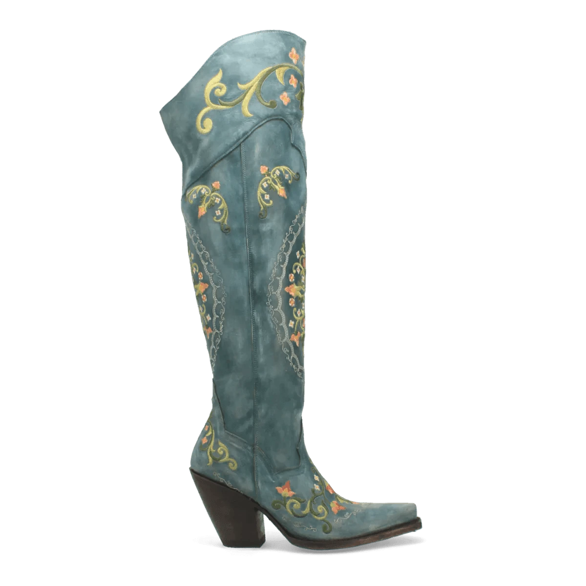 Dan Post Women's Flower Child Snip Toe Leather Tall Boots - Turquoise DP3271