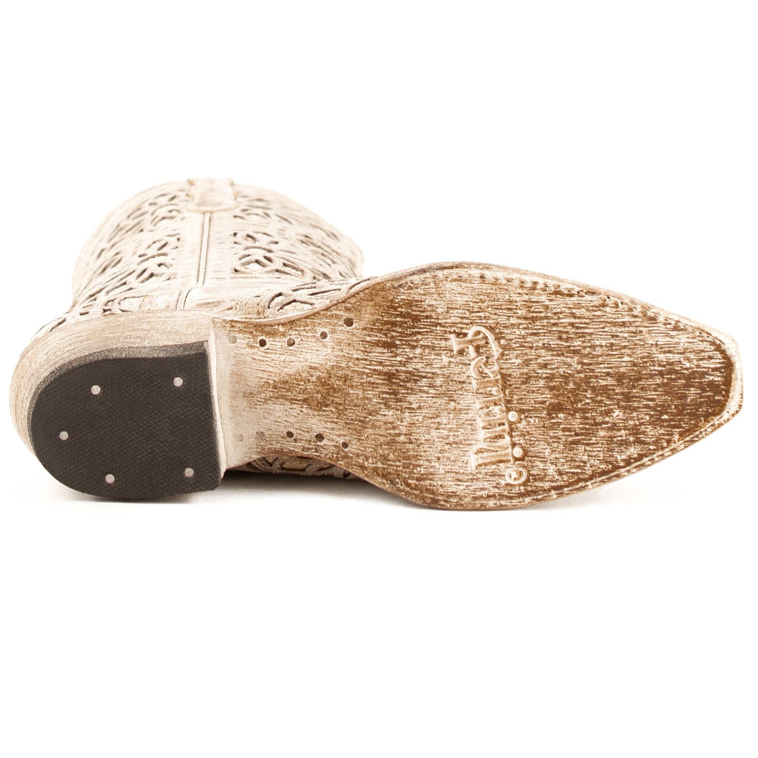 A soft brown tone with a frost finish and cream shimmer inlay work perfectly with any color and every outfit in your closet. Whether it's a casual outing in shorts or jeans, or a special dress-up event, this true fashion boot puts your look over the top and will make you the envy of everyone.