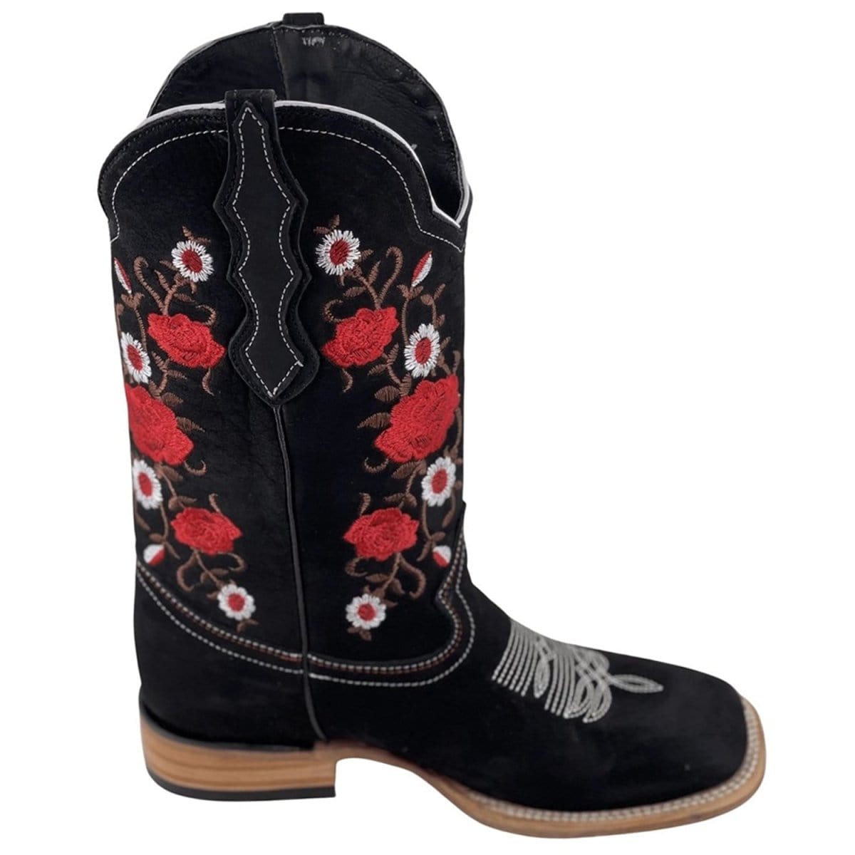 Women´s Nobuk Leather Boots Camel with Red Roses