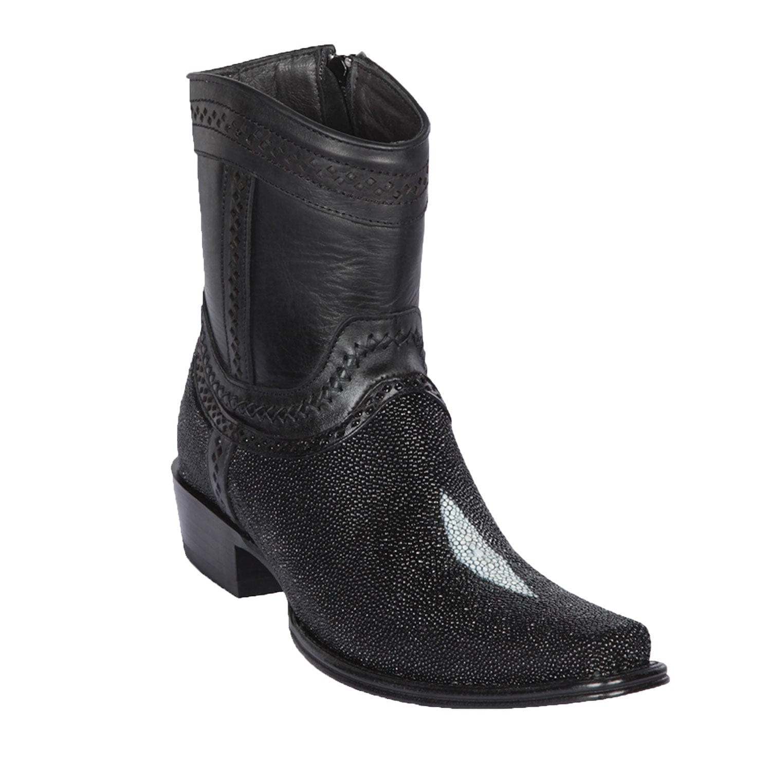 Men's Genuine Stingray Skin Single Stone European Square Toe Short Boots With Zipper Black Color - Los Altos Boots