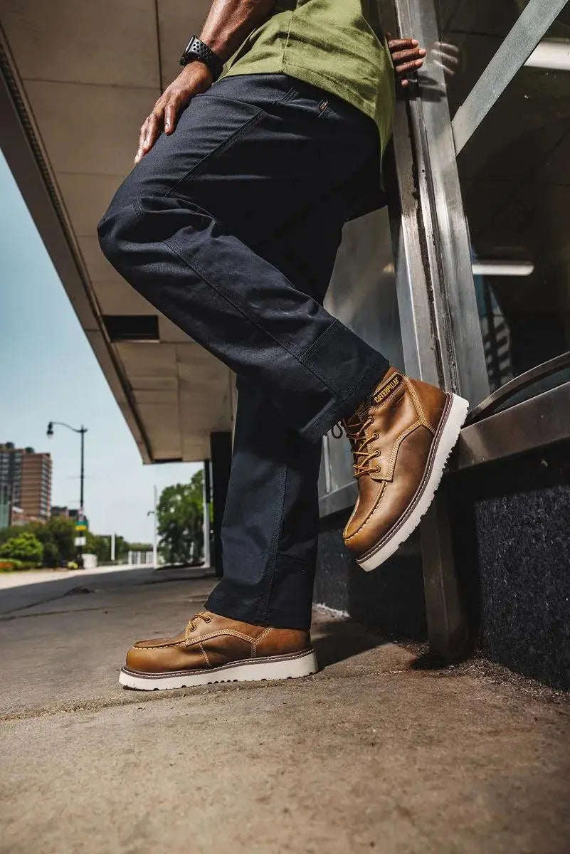 The Reclaimer is a classic wedge work boot that embodies the integrity and toughness synonymous with the world’s leading machinery brand. This moc toe design features a waterproof leather upper, offering both soft and steel toe options to suit your needs. The stable wedge outsole ensures the traction you expect, making the Reclaimer the perfect blend of durability and performance